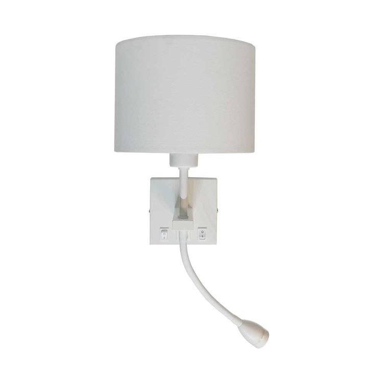 Het leeslampje is uitgevoerd met een 3 Watt led module die prettig warm wit licht uitstraalt. Het andere lichtpunt in de kap is uitgevoerd met een grote (E27) fitting. Dit lichtpunt wordt geleverd excl. de lichtbron zodat je zelf kan bepalen welke sfeer je in de slaapkamer wilt creëren.