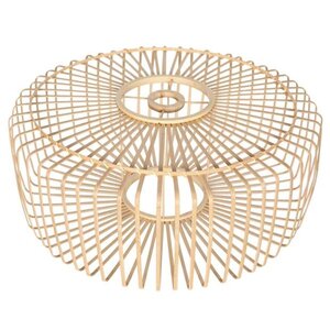 Inclusief plat ronde gevlochten bamboe kap met houten details – Het pareltje in onze collectie – Dit model wordt geleverd met een unieke, plat ronde kap van gevlochten bamboe met verfijnde houten details. De kap heeft een diameter van 60 cm en een hoogte van 25 cm, wat zorgt voor een warme en natuurlijke uitstraling.