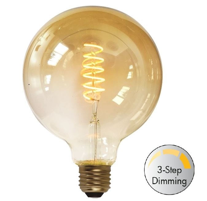 Een sfeervolle globe 12.5cm led lamp die is uitgevoerd met een 3 stappen dimmer, De 3 stappen dimmer kan je gewoon met je eigen muur schakelaar bedienen. Hierdoor heb je altijd het juiste licht voor de juiste sfeer in je huis.
