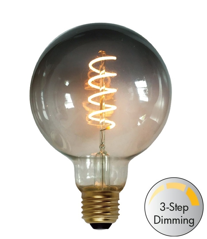 E27 7Watt Led Smoke 95mm incl. Stappen Dimmer