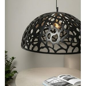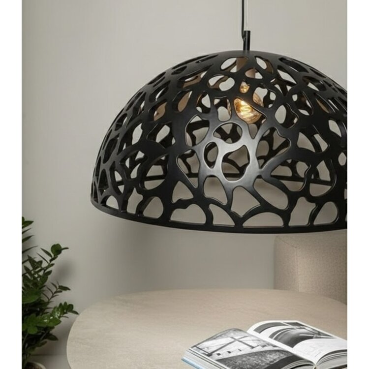 De Open Hanglamp black valt op door zijn vorm en open structuur, waardoor het licht mooi door de ruimte wordt verspreid. De open vorm creëert een speels patroon van licht en schaduw, wat zorgt voor een uitnodigende, warme ambiance. Dit maakt de lamp ideaal voor boven de eettafel, in de woonkamer, slaapkamer of als blikvanger in de hal.