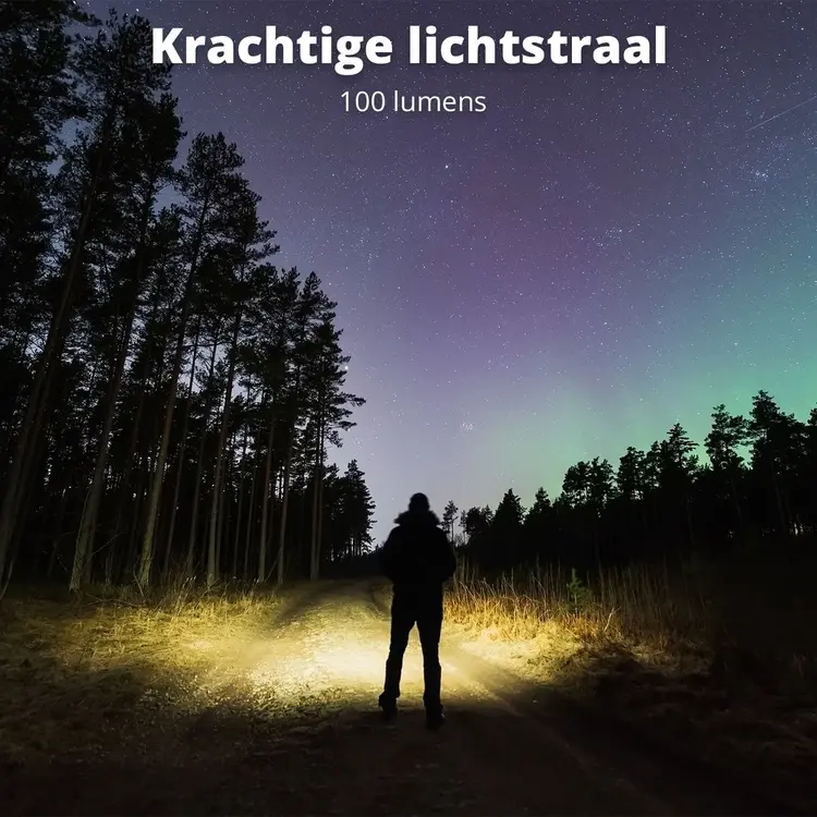 - Krachtige lichtstraal tot 100 meter met 100 lumen helder LED-licht