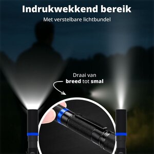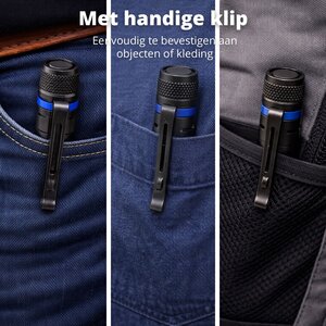 De behuizing van hoogwaardig aluminium maakt deze zaklamp robuust en bestand tegen dagelijkse impact. Vallen, stoten of meedragen in je tas? Geen probleem. Dit model is ontworpen voor intensief, dagelijks gebruik of je nu in de bouw werkt, klust in de schuur of tijdens outdoor-activiteiten op pad bent.