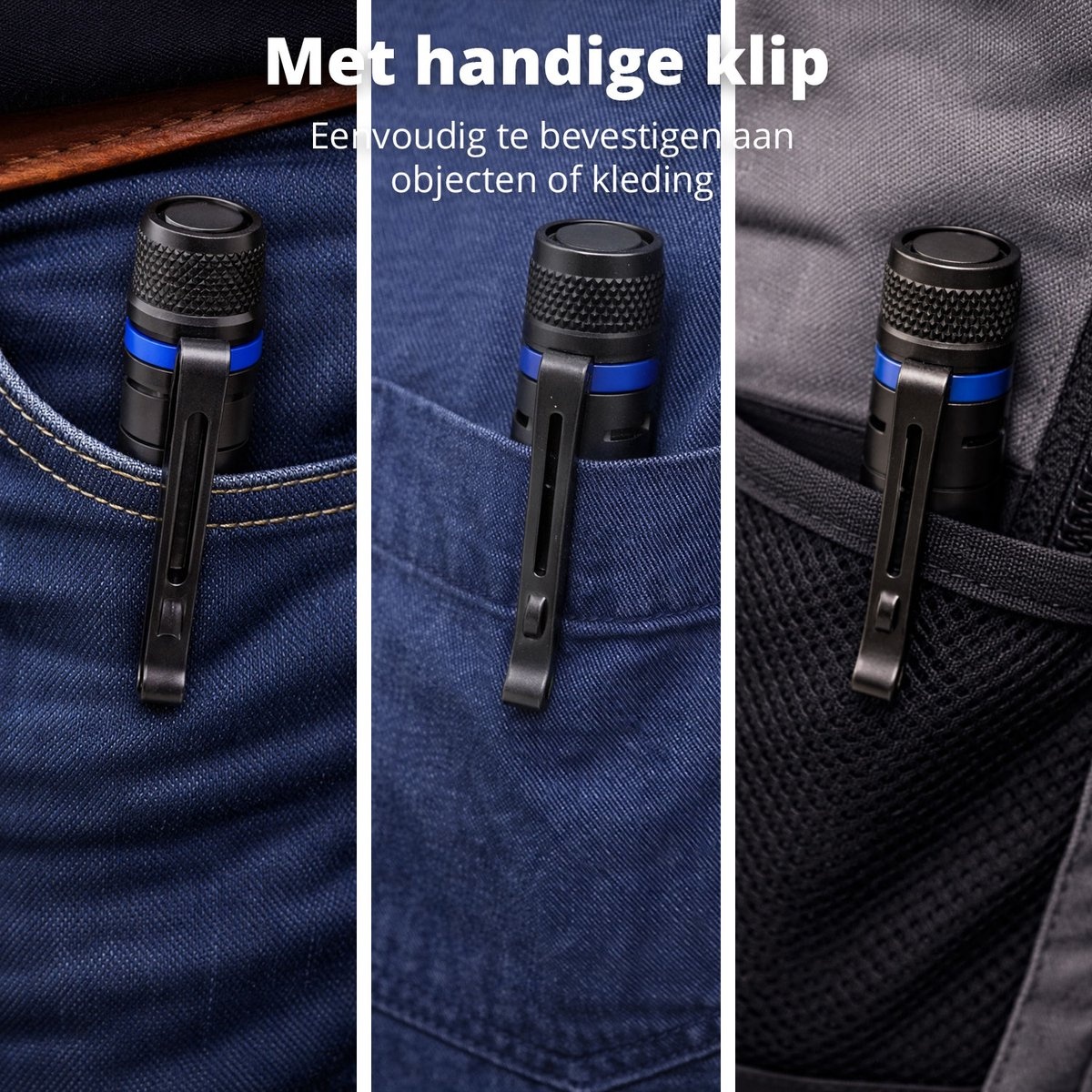Dankzij de afneembare clip bevestig je de zaklamp eenvoudig aan je riem, rugzak, notitieboek of borstzak. Zo heb je je verlichting altijd binnen handbereik. Het lichtgewicht ontwerp van slechts 41 gram maakt hem extra comfortabel voor kinderen, waardoor deze ook ideaal is als zaklamp kinderen voor kamperen, schoolprojecten of speurtochten.