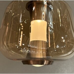 Luxe rosé goud met warm amber licht, dat is de Rosa hanglamp van Freelight. Deze lamp combineert een verfijnde rosé gouden afwerking met stijlvol amberkleurig glas, wat zorgt voor een zachte, warme gloed in de ruimte. De lens verlichting onderin de glas kap zorgt voor direct gericht licht naar beneden.