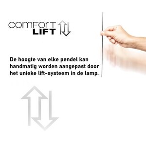Deze designlamp kenmerkt zich door zijn tijdloze uitstraling, praktische eigenschappen en hoogwaardige materialen. De zwartkleurige afwerking zorgt voor een zachte, warme lichtverspreiding die elke ruimte sfeervol maakt. Met het innovatieve Comfortlift systeem pas je de hoogte eenvoudig aan zonder gereedschap, voor ideale verschillende plafondhoogtes en toepassingen.