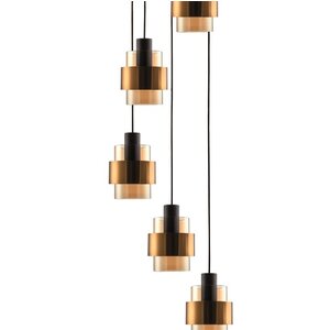 De Chiasso Hanglamp kenmerkt zich door zijn modern design, waarin de combinatie van mat zwart en amber glas een elegant contrast creëert. Deze subtiele doch indrukwekkende mix maakt de lamp tot een eyecatcher, zonder te overweldigen. Het amber glas zorgt voor een zachte, diffuse verlichting, die een warme en uitnodigende sfeer creëert in elke ruimte.