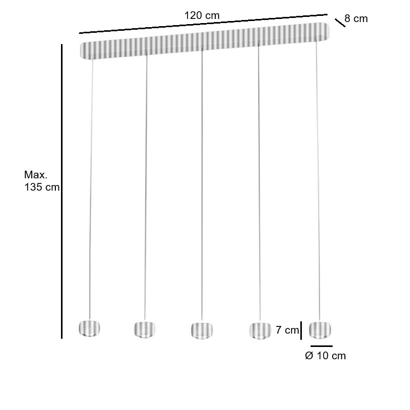 - 3- of 5-lichts balk (90 of 120 cm) - perfect voor lange eettafels en kookeilanden