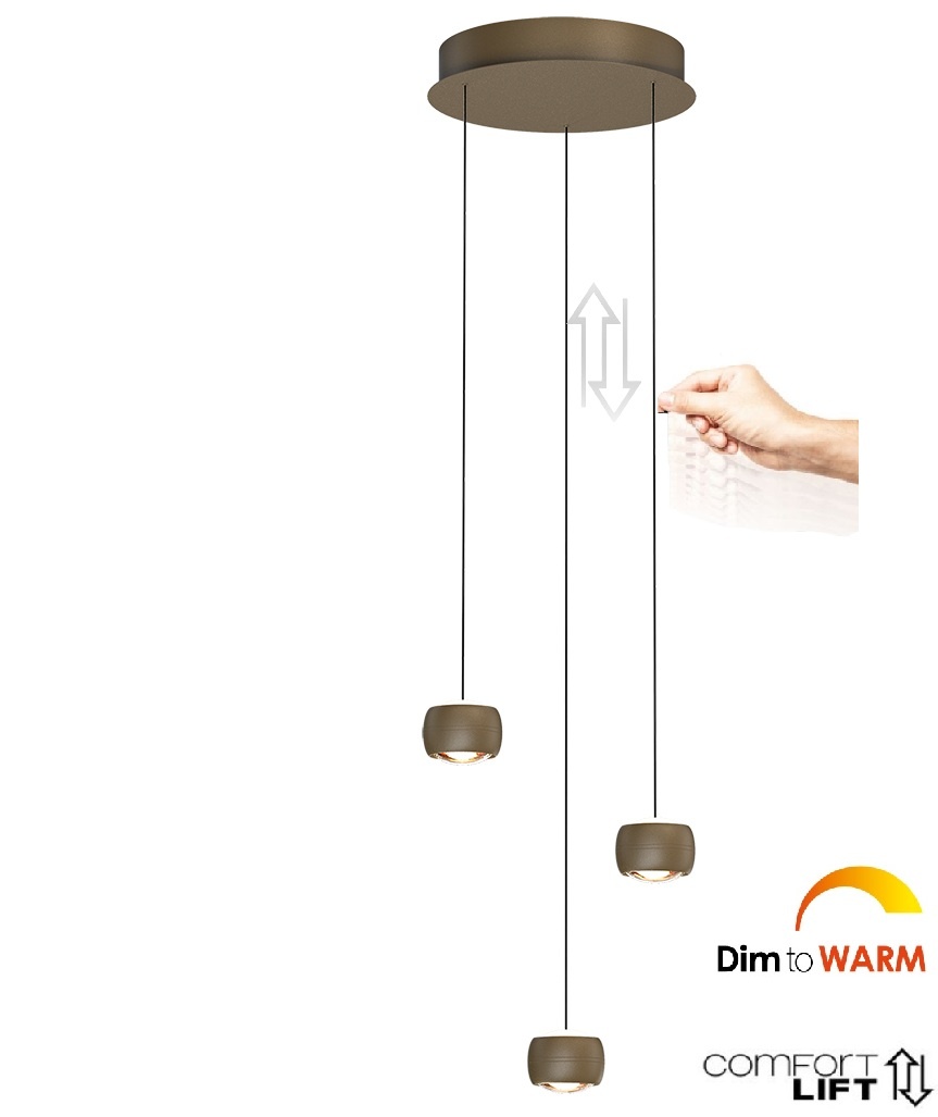 Altijd het juiste licht, op de juiste hoogte! De geïntegreerde Comfortlift maakt het mogelijk om de pendels soepel in hoogte te verstellen. Ideaal boven je eettafel of in de living.