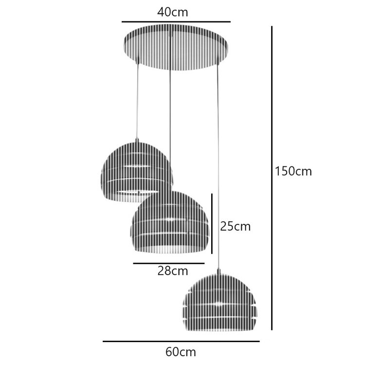 De Djarin hanglamp is mat zwart met een gouden binnenkant en uitgevoerd met een E27 fitting. De 3 lampenkappen van de Djarin is 28 cm doorsnee en 25cm hoog.