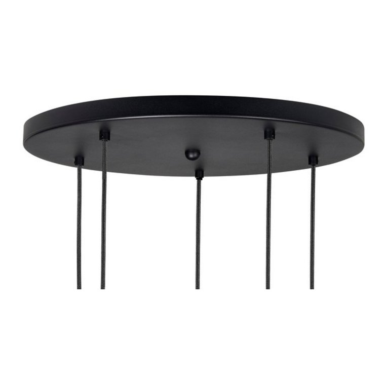 De jute kabel waar de stroomkabel in is verwerkt geeft deze lamp extra warmte samen met deze speciale kleur haal je een warme sfeermaker in huis. Deze hanglamp heeft verschilleden maten smoke glazen die verspreiden het licht op een bijzondere wijze door de woonkamer, vide of trapgat. De subtiele mat zwarte plafondplaat is 45 centimeter doorsnee.