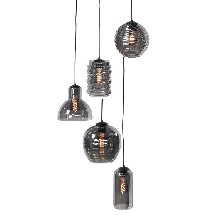 Highlight Hanglamp Fantasy Smoke Glas 5Lichts 160cm