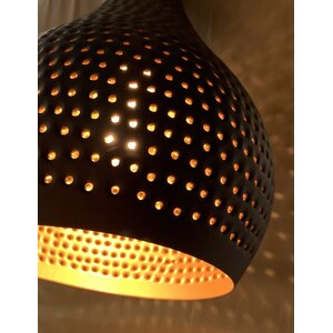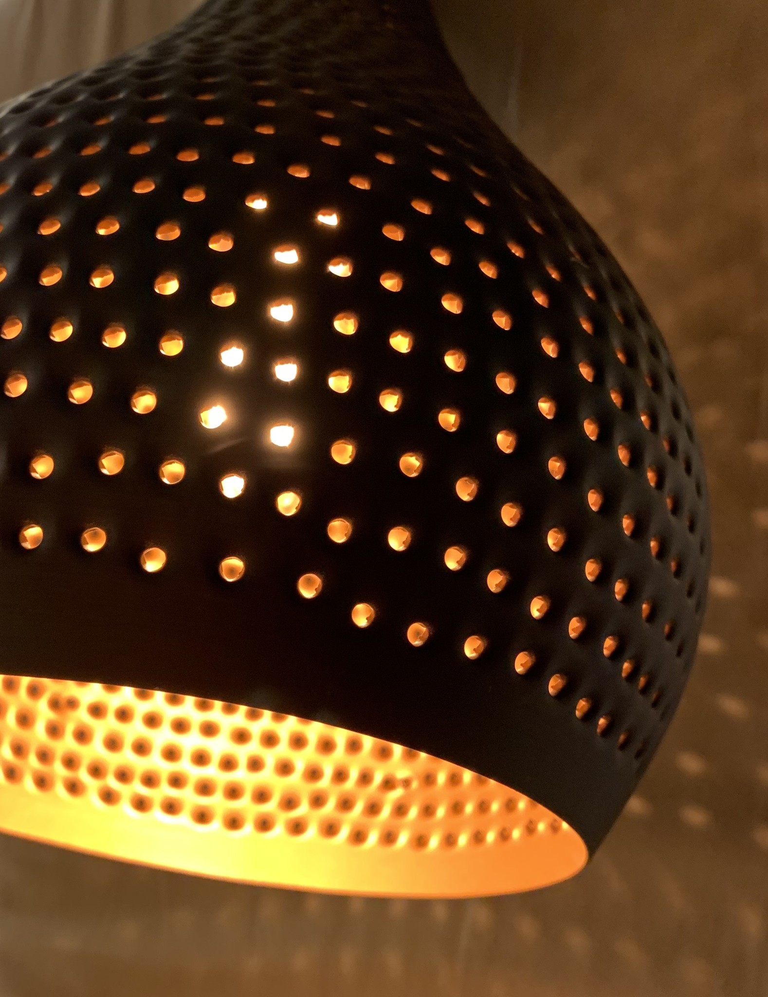Zodra de lamp brandt, gebeurt er iets bijzonders. De kleine gaatjes in de metalen kap zorgen voor een diffuus en speels lichtspel op je muren en plafond. Dit maakt de Bruciato tot een echte sfeermaker in huis.