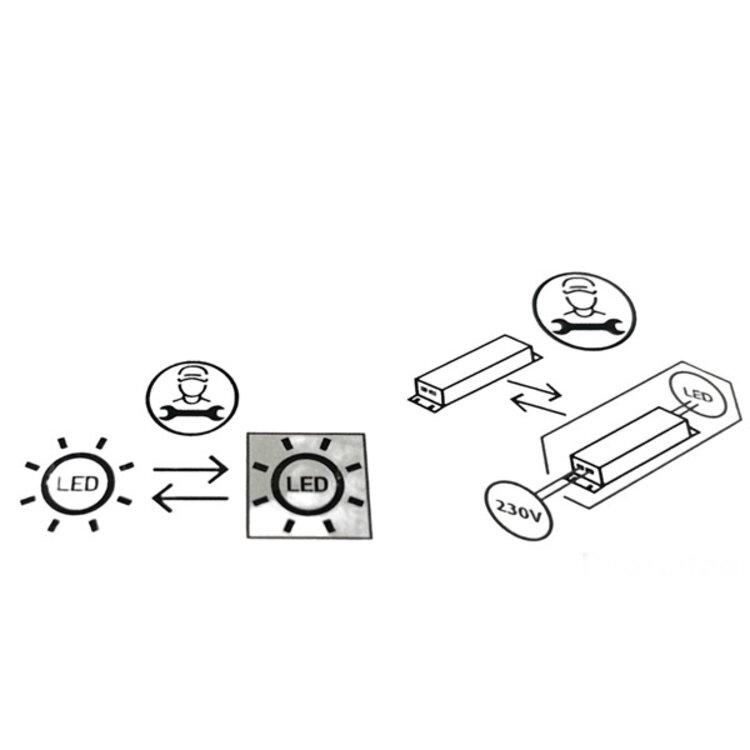Zowel de Led-driver als de Led-verlichting bij dit armatuur zijn vervangbaar. Dit leidt ertoe dat dit armatuur waarvan de lichtbron en de driver door een professional kan worden vervangen uitgesloten is voor het energielabel.