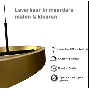 De Freelight Hanglamp Livello goud Led 47 Watt met een diameter van 60 centimeter vormt deze ringlamp een echte blikvanger boven bijvoorbeeld de eettafel, in de woonkamer, kookeiland of in een kantoorruimte.