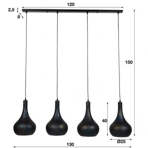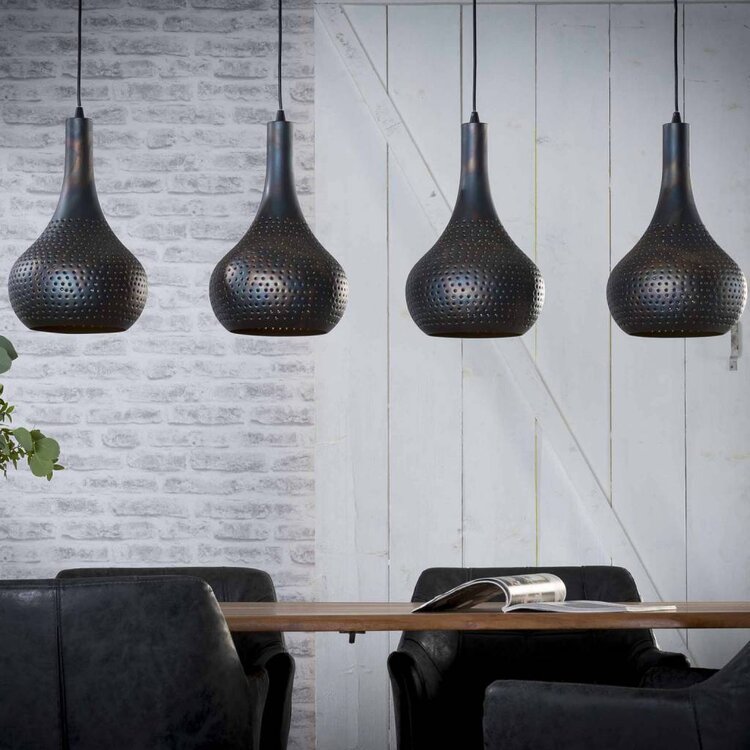 Hanglamp Punch Vintage Black Brown 4 Lichts L130cm