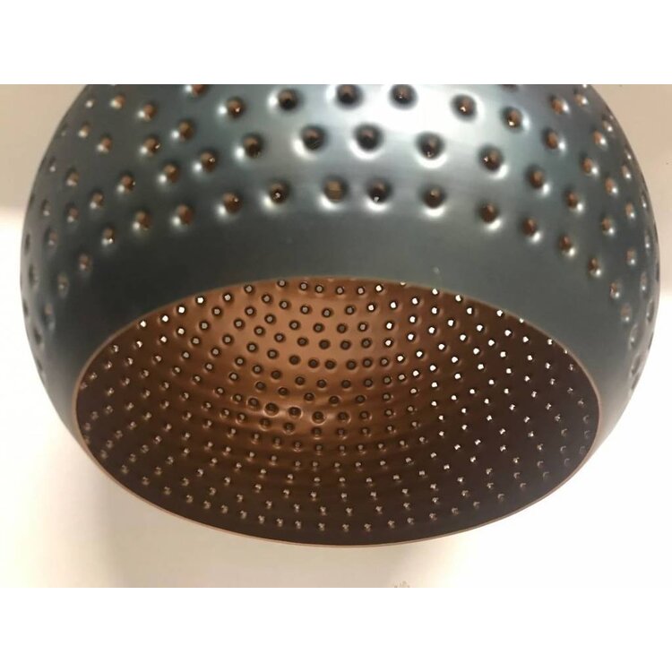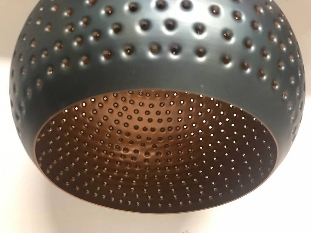 Elke kap is met de hand geperforeerd, waardoor geen enkele lamp hetzelfde is. De kleine gaatjes zorgen voor een semi-transparant effect en verspreiden het licht op een bijzondere manier door de ruimte.