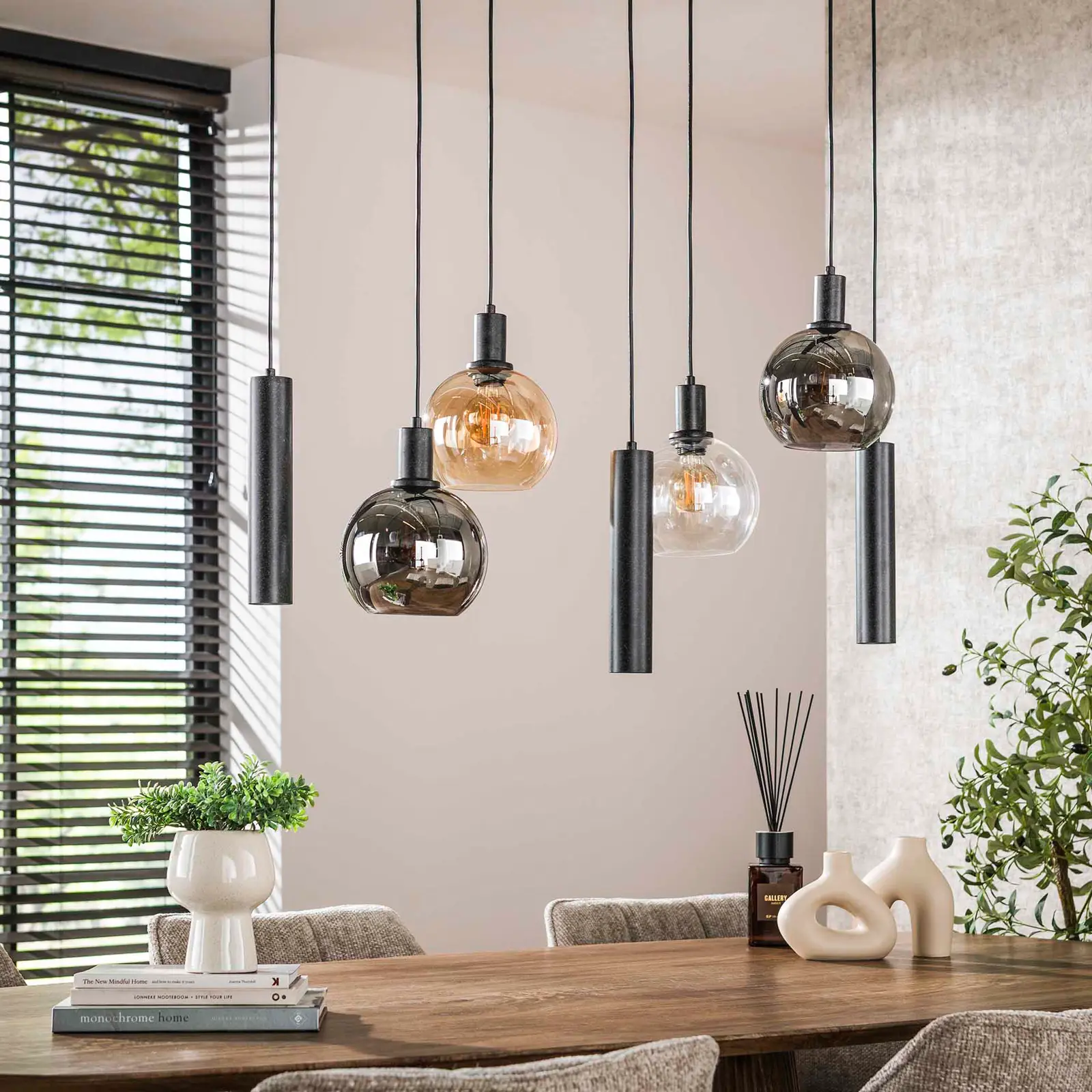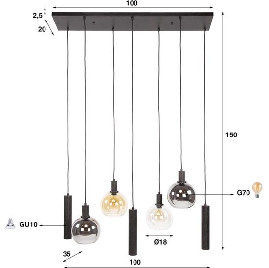 Met zeven lichtpunten, een mix van glazen en metalen lampenkokers en volledig verstelbare pendels tot 150 cm, creëer je een lichtplan dat precies past bij jouw ruimte. Dit model wordt vaak gekozen voor langwerpige eettafels en uitgebalanceerde verdeling van licht.