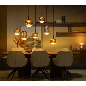 Met een maximale hoogte tot 250-290 cm is deze hanglamp uitermate geschikt voor hoge plafonds. Tijdens de installatie kun je de pendels individueel in hoogte verstellen, zodat je zelf een speels en persoonlijk lichtbeeld creëert boven je tafel of eiland.