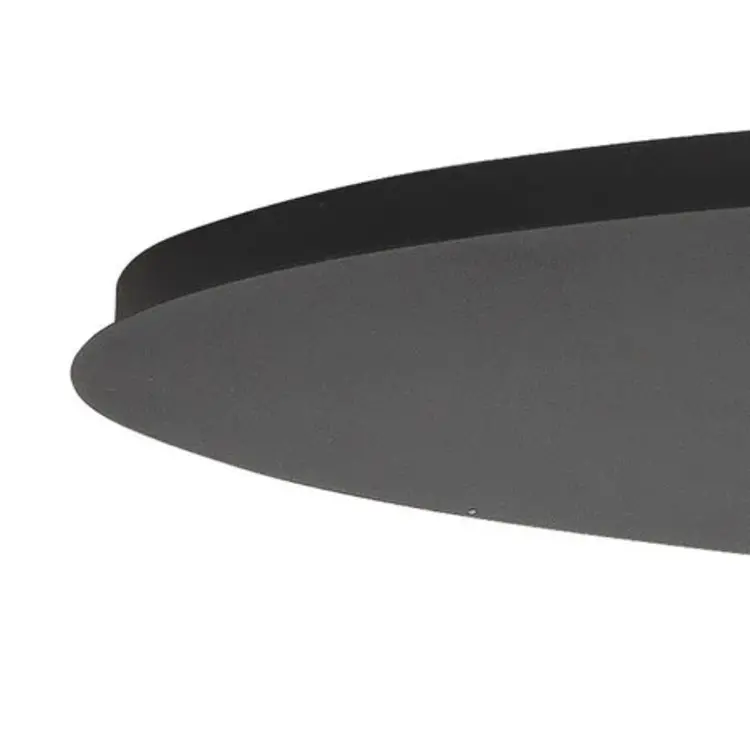 Ontwerp je eigen unieke lamp met deze zwarte ovale plafondplaat. Deze zwart gepoedercoaten metalen plafondplaat is 140 cm lang, 55 cm breed en 3.5 cm hoog, en wordt geleverd met een ophangsysteem.