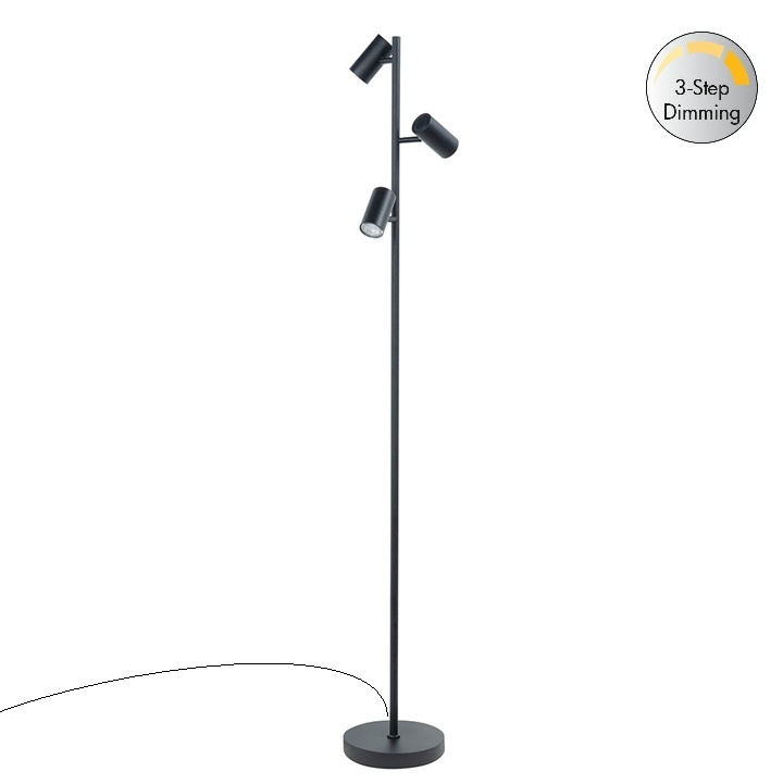 Vloerlamp Burgos Zwart 3 lichts 160cm
