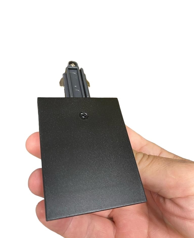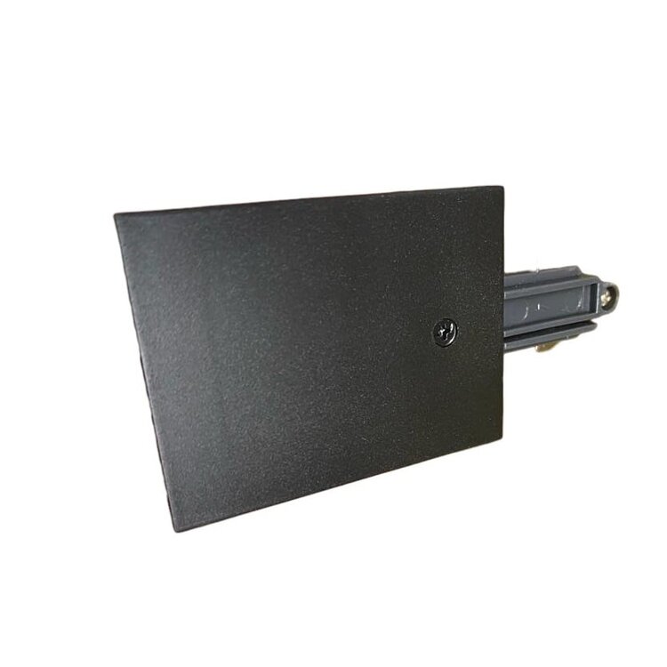 Deze 1 fase eindvoeding in de kleur zwart verbind de inbouwrails met de stroom kabels uit het plafond of wand en zorgt ervoor dat er stroom op de rails kan worden gezet.