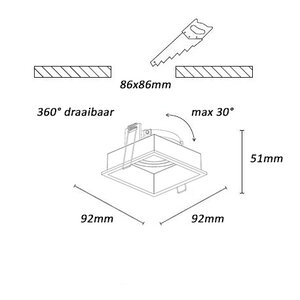Deze inbouwspot is geschikt voor een GU10 lichtbron, waaronder energiezuinige LED-lampen. Hierdoor heb je de flexibiliteit om zelf een lichtbron te kiezen die past bij jouw wensen, zoals warm wit licht voor een gezellige sfeer of helder wit licht voor functionele verlichting.