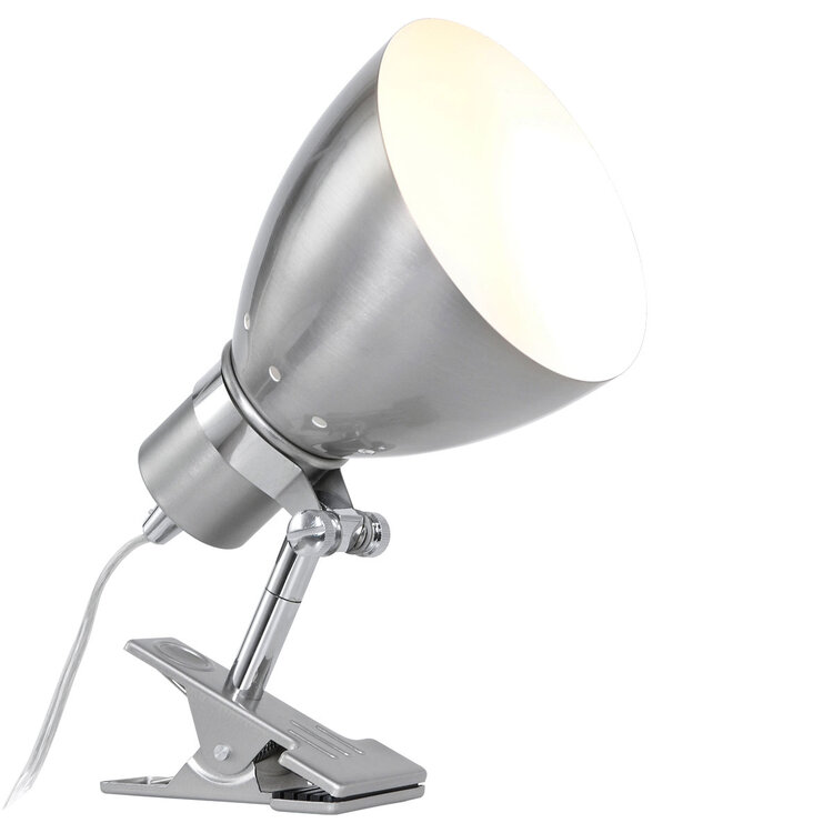 Een handige klemspot die door zijn trendy look in ieder interieur past. Deze spot met veel verstel mogelijkheden is voorzien van een E27 fitting maximaal 60 watt en een schakelaar verwerkt in het snoer. Geschikt voor spaarlampen, LED lampen en gloeilampen