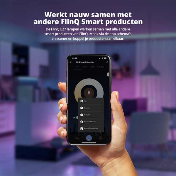 Ontdek de moeiteloze veelzijdigheid van onze GU10 & E27 lampjes. Met de handige FlinQ app kun je programma’s en scènes creëren op basis van tijd, locatie, weer, en meer. Je kunt zelfs je verlichting met je stem regelen dankzij integratie met spraakassistenten zoals Alexa en Google. De timer- en planningsfuncties maken het aanpassen van de verlichting aan je schema een fluitje van een cent. Of je nu al lampen hebt met een GU-10 ingang hier en een E27 ingang daar, geen zorgen! Deze Smart lichtbronnen werken naadloos hetzelfde in dezelfde app. Dus als het nu om één kamer of meerdere gaat, beheer al je lampen eenvoudig op één plek!