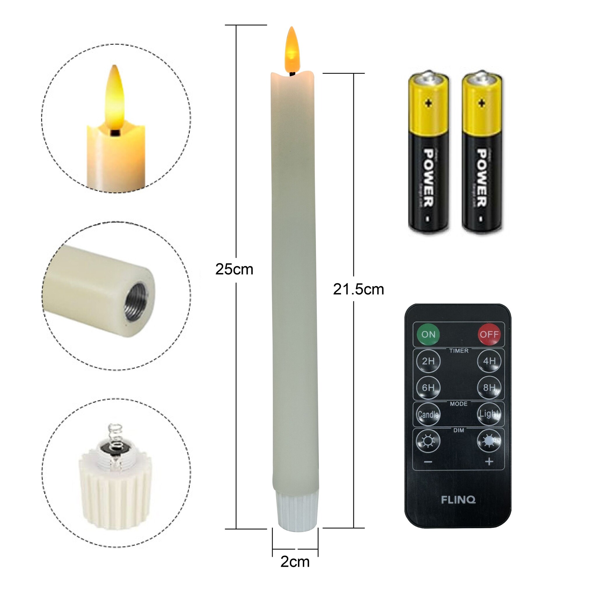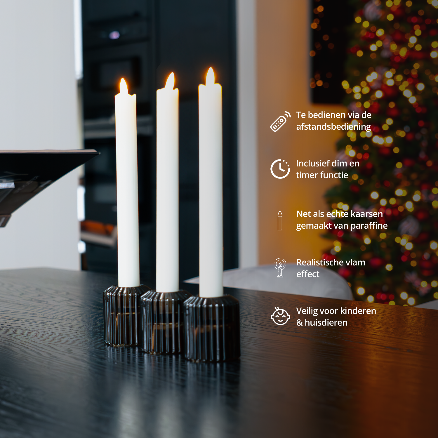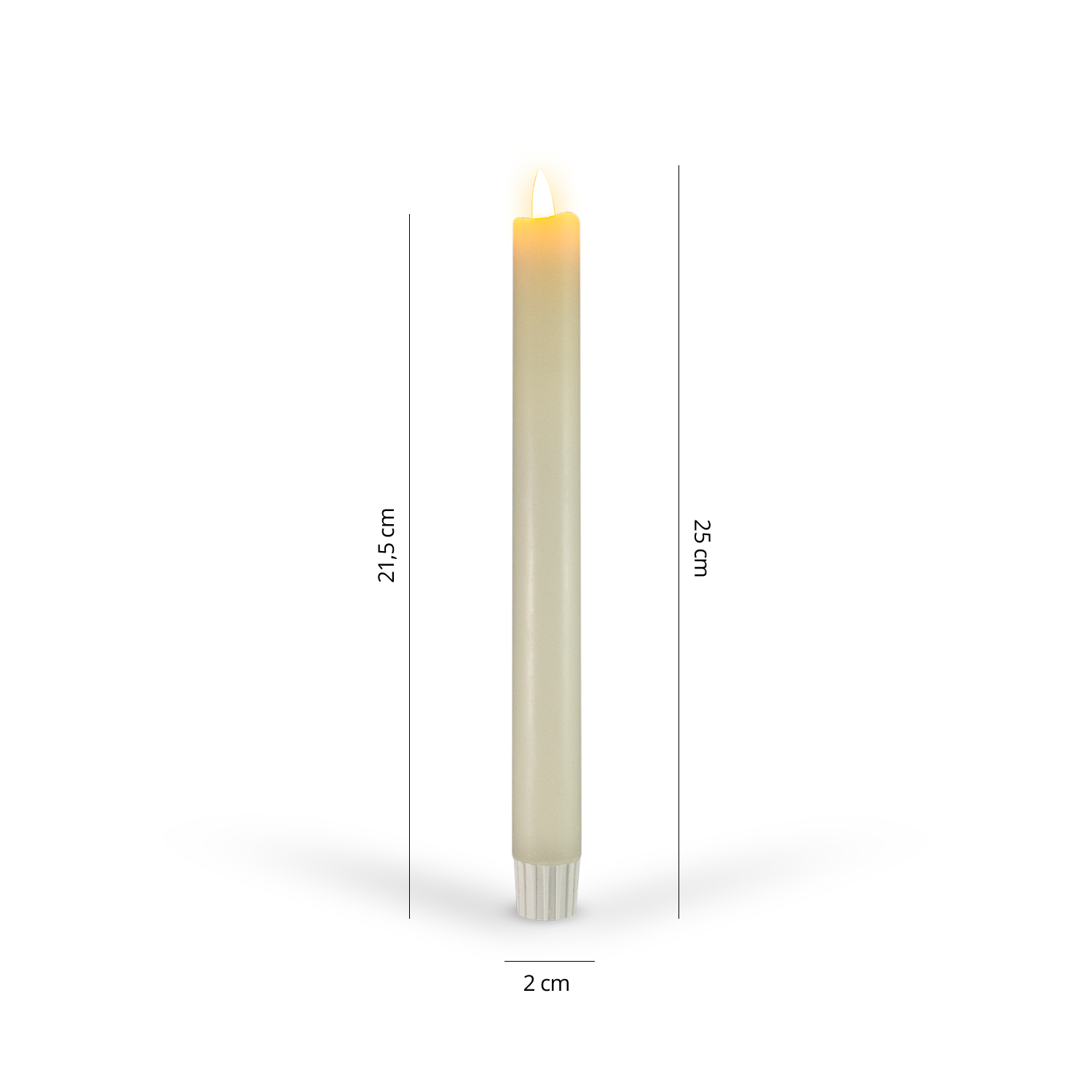 De LED-kaarsen werken op 2 AAA-batterijen per kaars, waardoor ze uiterst gebruiksvriendelijk en flexibel zijn. Je hoeft je geen zorgen te maken over snoeren of het vinden vaneen stopcontact zoals bij oplaadbare kaarsen. Plaats gewoon de batterijen en geniet van uren langsfeervol licht.