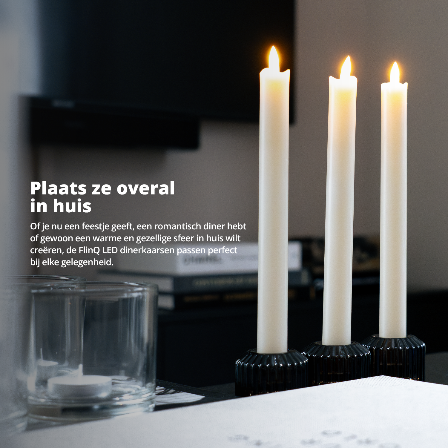 Of je nu een feestje geeft, een romantisch diner hebt of gewoon een warme en gezellige sfeer in huis wilt creëren, de FlinQ LED dinerkaarsen passen perfect bij elke gelegenheid. Deze kaarsen zijn ideaal voor de woonkamer, slaapkamer, kantoor, of zelfs de badkamer voor een rustgevende sfeer. De led kaarsen passen perfect in de kerstperiode, maar zijn net goed te gebruiken in de zomer of lente op het terras of in de tuin. Ze zijn niet waterdicht, dus gebruik ze buiten bereik van vocht. Creëer altijd de juiste ambiance met deze stijlvolle en functionele led dinerkaarsen.