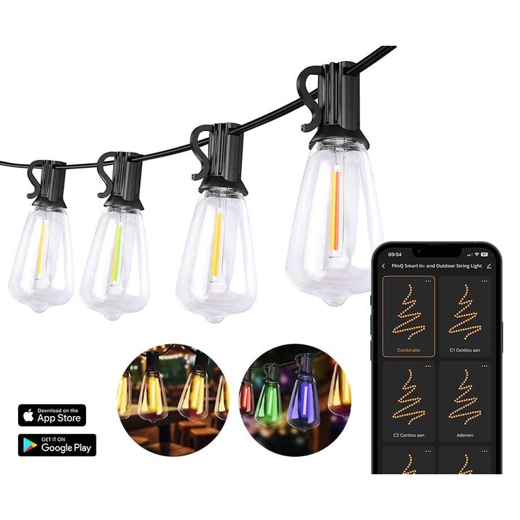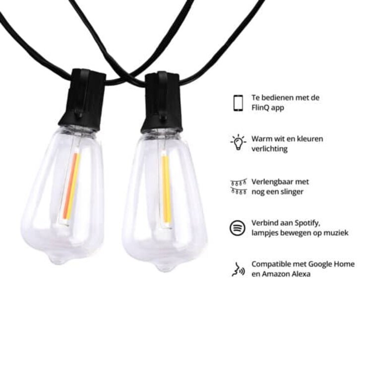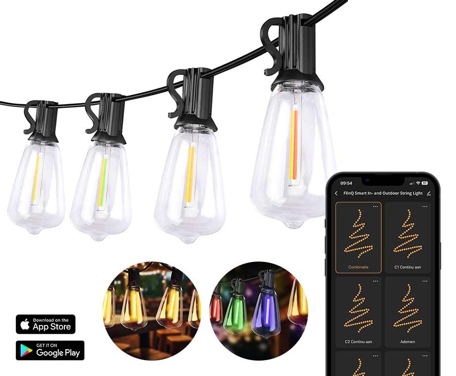 Met de FlinQ app heb je volledige controle over je lichtsnoer. Schakel de verlichting in of uit, pas de helderheid aan en kies uit verschillende kleuren en lichtmodi, allemaal vanaf je smartphone. De app maakt het eenvoudig om de perfecte sfeer te creëren voor elke gelegenheid. De lichtslinger heeft 16 lampjes.