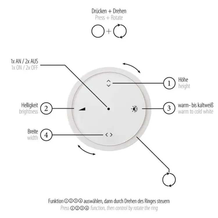 Dankzij de geheugenfunctie gaat de hanglamp altijd terug naar de laatst geselecteerde lichtstand. Creëer je eigen persoonlijke feel-good sfeer aan je eettafel. Aan de bovenzijde van de hanglamp bevinden zich vier aanraakvlakken, waarmee de lichtkleur en lichtintensiteit kan worden geregeld, de lengte kan worden verlengd of ingetrokken en de lamp kan worden in- en uitgeschakeld. Met de PURE-MOTO-RISE ben je zo flexibel mogelijk.