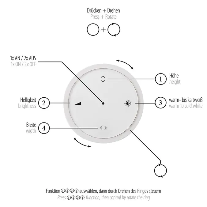 Zo sluit de hanglamp perfect aan bij persoonlijke wensen en gelegenheden. Als bij toverslag kunt u de bijbehorende stuurcommando's uitvoeren via de nieuw ontwikkelde ronde afstandsbediening met de omringende instelring. Met de meegeleverde muurbeugel kan de magnetische afstandsbediening ook in de meest gangbare lichtschakelsystemen worden geïntegreerd.