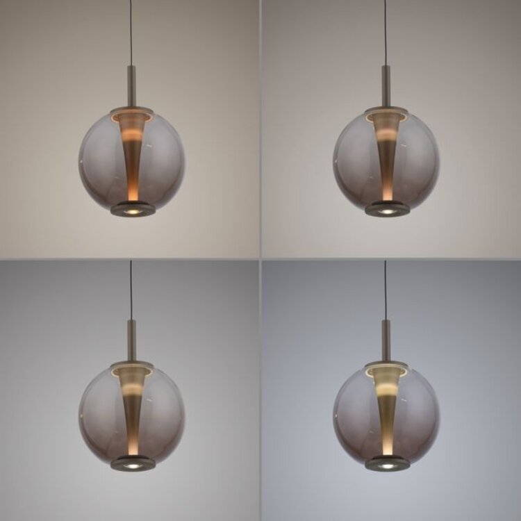 Het minimalistische, ronde ontwerp straalt luxe en rust uit. De combinatie van het bronzen frame en het amberglas zorgt voor een warme en elegante uitstraling die perfect past in moderne woonruimtes. Dankzij de hoge kleurweergave (CRI ≥ 90) komen kleuren in je interieur bovendien natuurlijk en levendig tot hun recht.