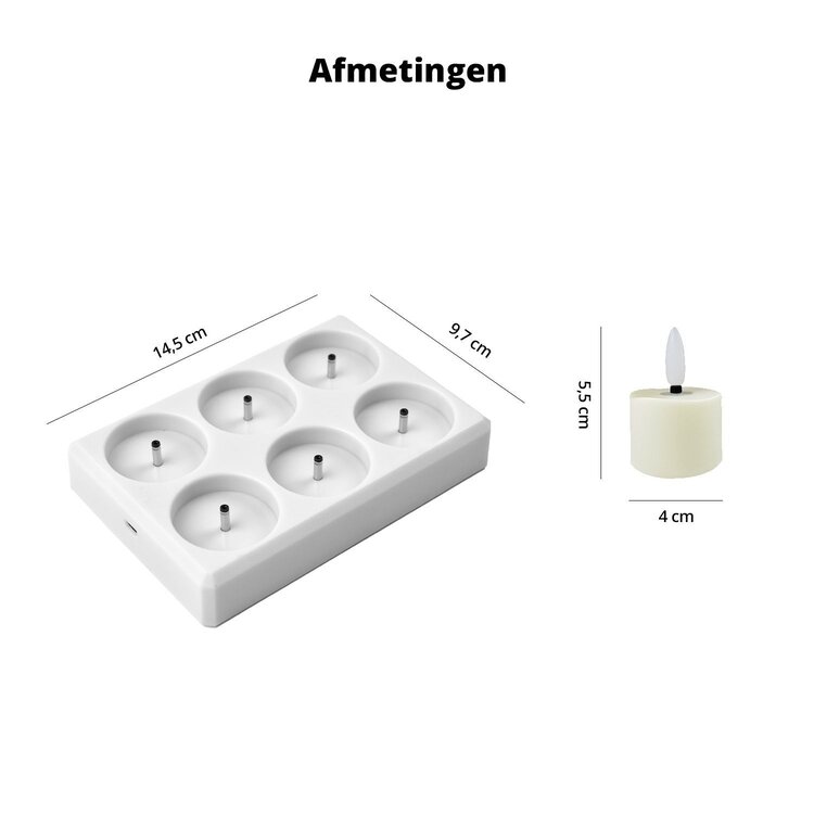 Oplaadbare Waxinelichtjes Led Kaarsen Bewegende Vlam Incl. Afstandsbediening 6 Pack