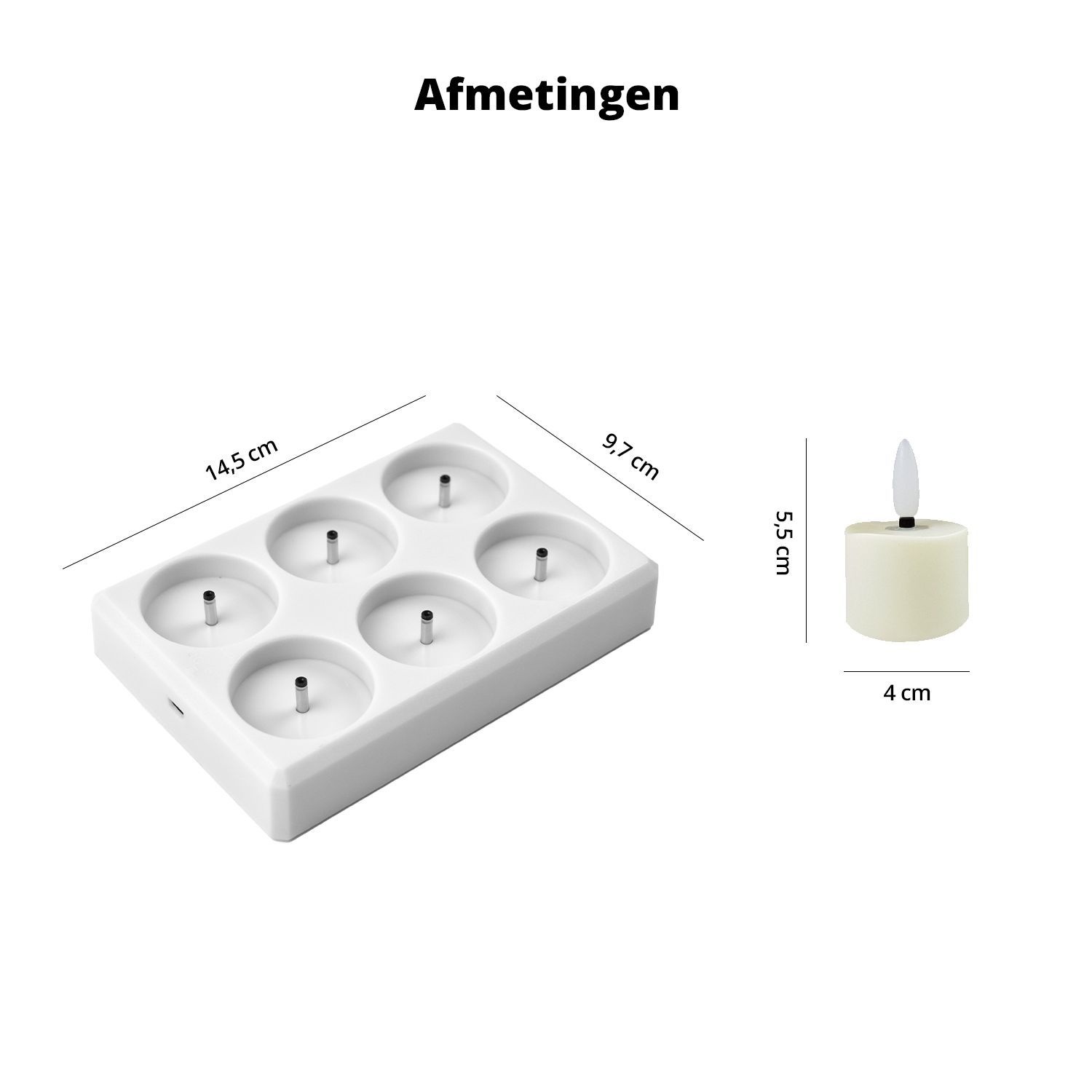 - Waxinelichtje: 5.5 x 4 cm