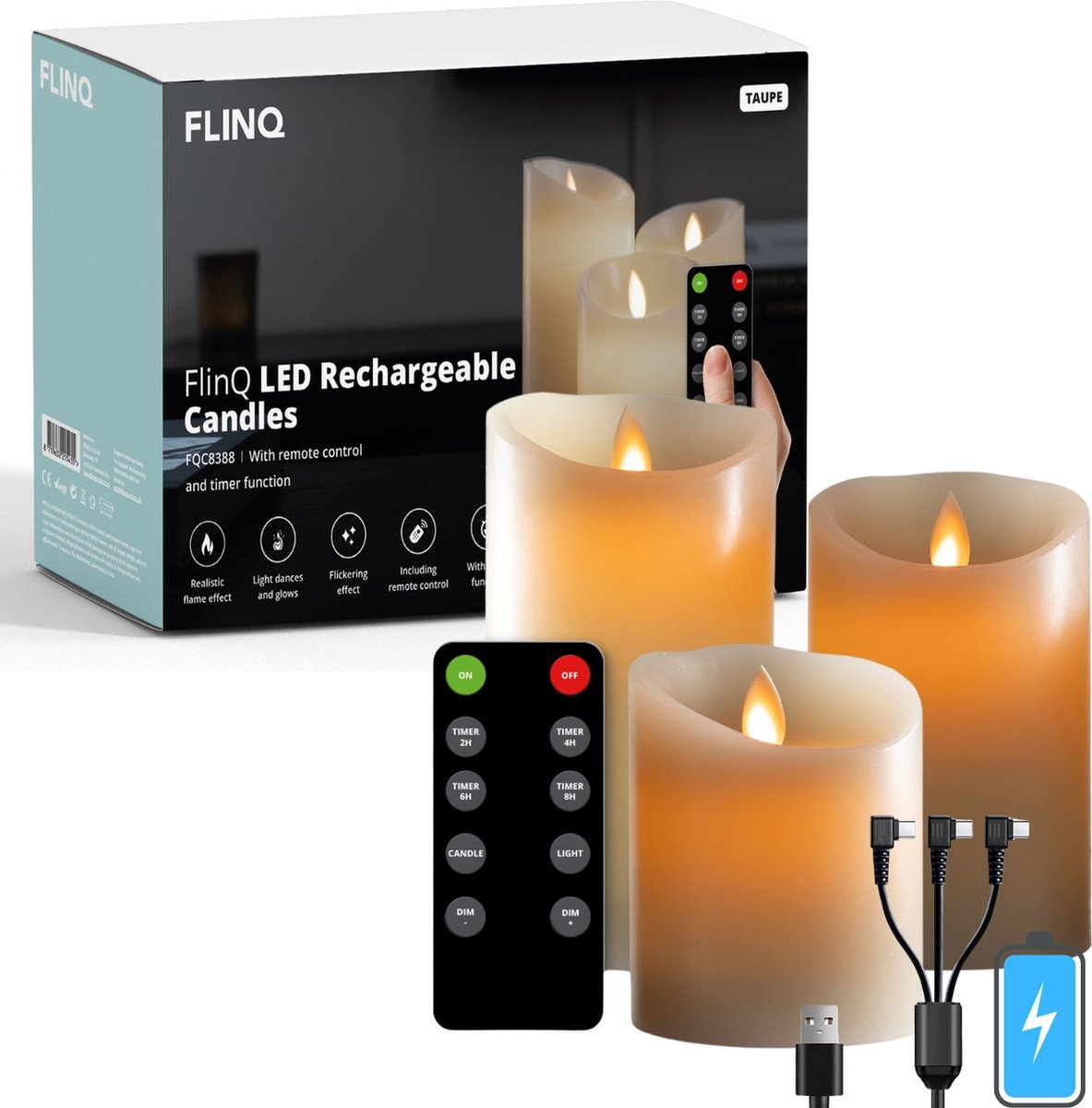 Creëer de perfecte sfeer in je huis, tuin of omgeving. De FlinQLed oplaadbare kaarsen set met afstandsbediening bevat veel opties voor de gewenste sfeer. De kaarsen zijn zeer realistisch en bovendien erg veilig & duurzaam!