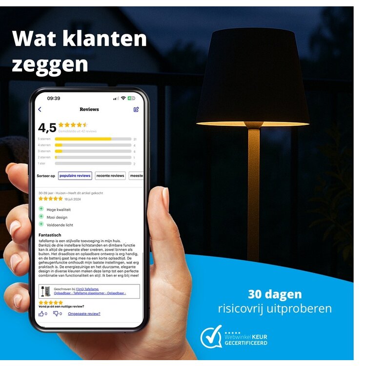 Dankzij de IP44-classificatie is de Lume spatwaterdicht en dus ook geschikt voor buitengebruik. Zet hem op je tuintafel tijdens een zwoele zomeravond, gebruik hem bij de loungeset of plaats hem als decoratief accent op je balkon. Natuurlijk is hij ook perfect voor binnen: in de slaapkamer, woonkamer, of op kantoor.