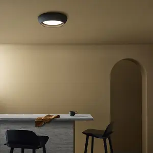 De Fjord plafondlamp verspreidt een zacht en diffuus licht, waardoor hij perfect is als sfeerverlichting in de woonkamer of slaapkamer. Ook in de hal of gang komt deze moderne plafondlamp goed tot zijn recht door zijn compacte en rustige design.