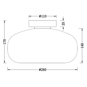 Deze plafondlamp Paradise is Ø 28centimeter en ↕ 17 centimeter. Het zwarte plafondbakje is Ø 11centimeter zodat deze netjes over de centraaldoos( waar de bedrading uit komt) heen past. De plafonniere is geschikt voor een lichtbron met een E27 (grote) fitting tot maximaal 40 Watt.