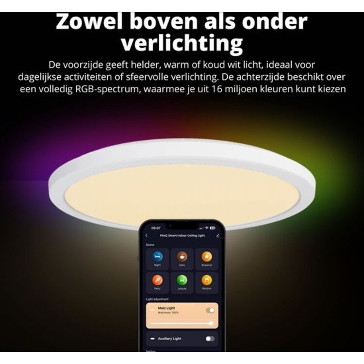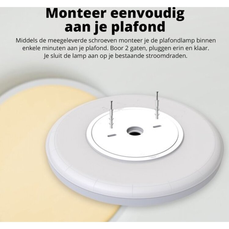 De plafondlamp eenvoudig in een handomdraai te installeren. De FlinQ Smart Plafondlamp maakt jouw interieur compleet!
