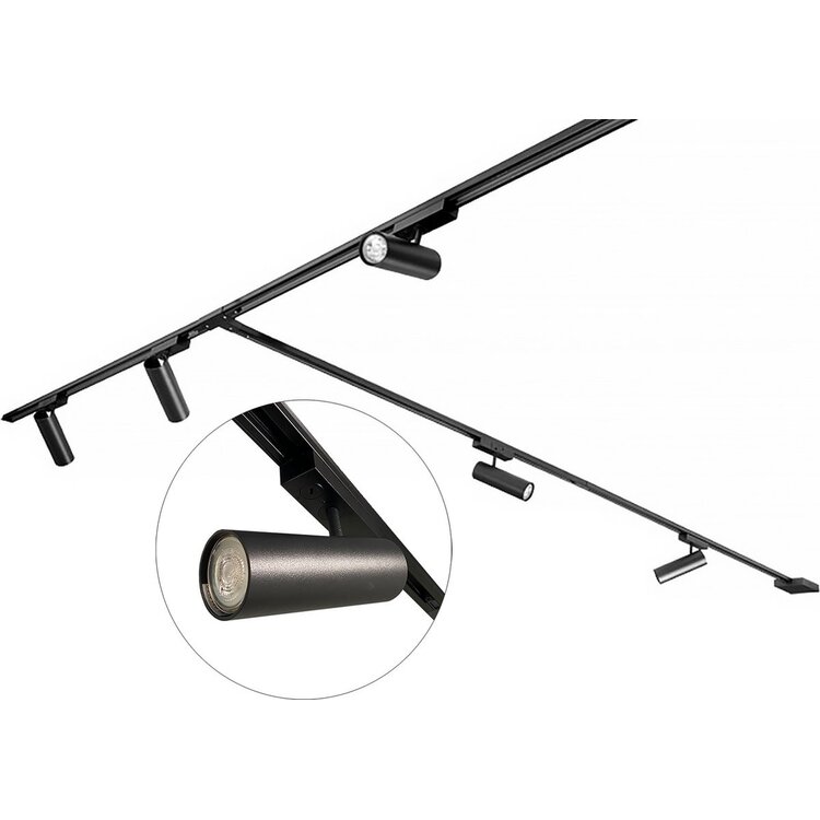 Dit zwarte railsysteem biedt je de mogelijkheid om de rails zo te monteren dat je de ideale lichtverdeling in het interieur krijgt. De verlichtingsrail is 4.8 meter lang die op elke lengte is in te korten met een ijzerzaagje. De prachtige gu10 spotjes zijn zowel draaibaar als kantelbaar en overal in de rail te klikken.