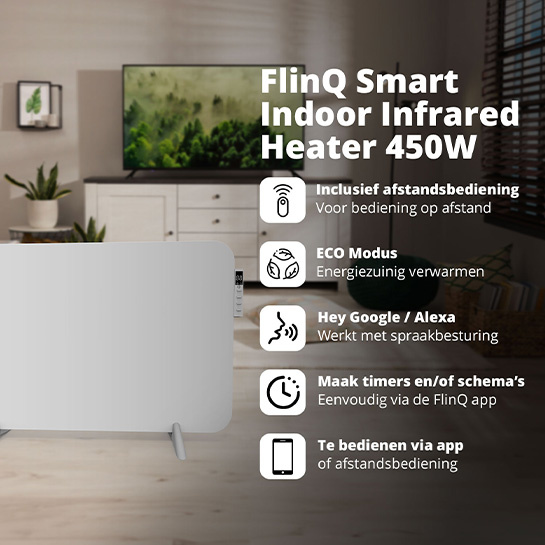 verwarmer via de gratis te downloaden FlinQ App en je kunt tussen het appen door de temperatuur