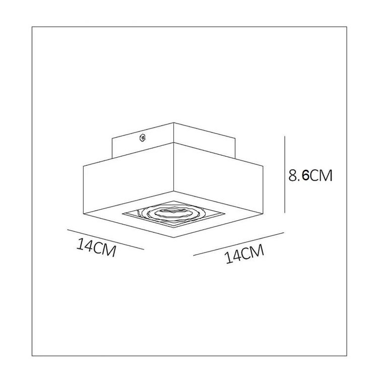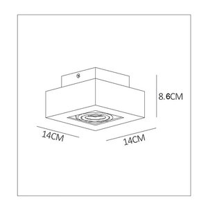 De lamp is 14 centimeter lang en 14 centimeter breed de hoogte is 8.6 centimeter. Deze spot serie Bosco wordt geleverd in de kleuren wit en zwart.