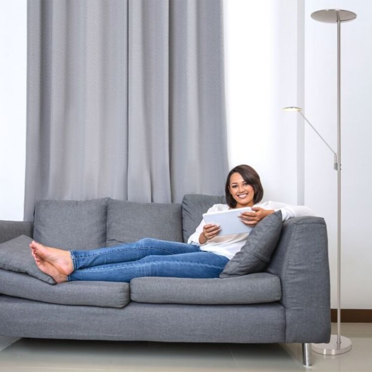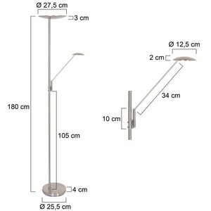 Vloerlamp Daphne heeft een uplighter & een leeslamp. Beide zijn voorzien van vervangbare LED module. De leeslamp heeft LED module van 7 Watt met 2700-4000 Kelvin & 700 Lumen, de uplighter heeft een LED module van 33 Watt met 2700-4000 Kelvin & 3300 Lumen.