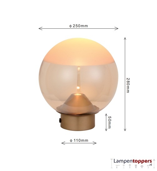 Yvonne Tafellamp Ø 25cm Dimbaar 6Watt Brons - Amber Glas