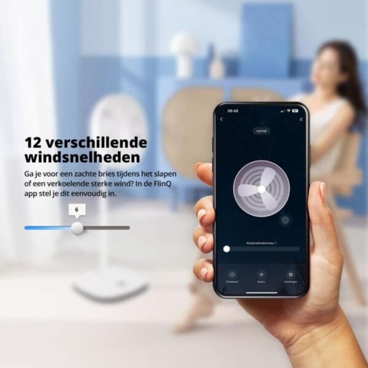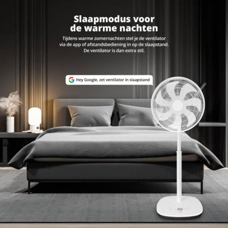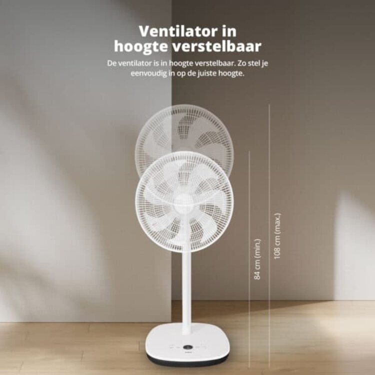 Deze slimme ventilator is helemaal aan te passen aan jouw wensen. Met 12 verschillende snelheidsstanden creëer je het windje dat voor jou als aangenaam voelt. Verder is de ventilator ook in hoogte verstelbaar en beschikt het over een horizontale swing (90°). Om de windstroom van buiten zo goed mogelijk na te bootsen beschikt de ventilator over een natuur-stand. De snelheid van de ventilator gaat harder en zachter.