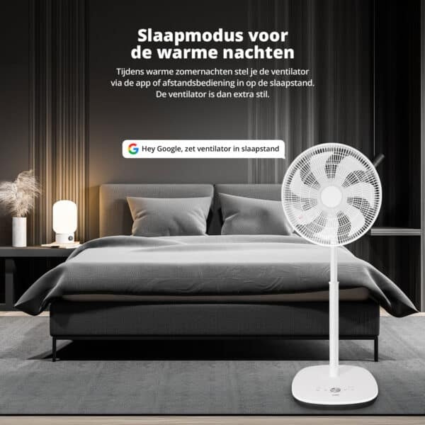 Wil je een grote woonruimte verkoelen? Dat is geen probleem met deze ventilator. Met een bereik van 10 meter heb je zelfs in de verste uithoeken van je woonkamer een heerlijk briesje. De ventilator is zo goed als geluidloos en dit maakt het ook perfect voor in de slaapkamer.