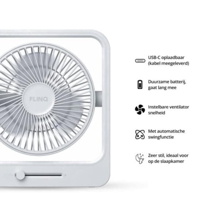 Ventilator Coolcube Wit incl. Swingfuntie Draadloos & Oplaadbaar via USB-C
